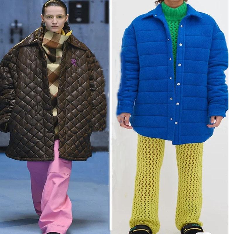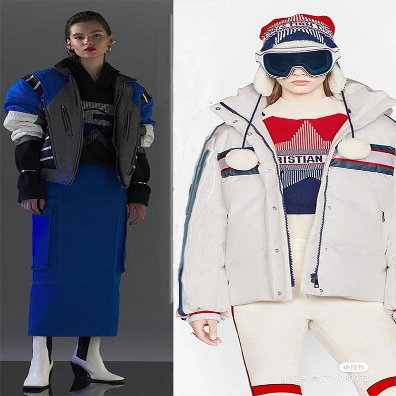 বিপরীত রঙের ব্লকের স্প্লিসিং প্রায়শই চলাচলের প্রাণশক্তি প্রকাশ করার জন্য ব্যবহৃত হয়। জ্যাকেটের সিলুয়েট হুড কলারের মোটা ভাব কমিয়ে হালকা এবং আরও আরামদায়ক সিলুয়েট দিয়ে এটি প্রকাশ করে।